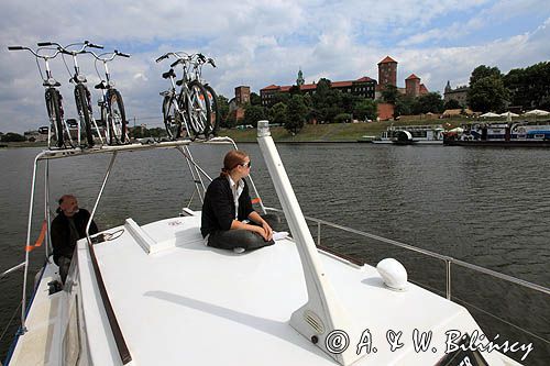 Obiecywaliśmy, że od czasu do czasu napiszemy coś o jachtach, barkach, hausbotach. Dziś o łódce, na której zaczęła się nasza przygoda z hausbotingiem, czyli turystyką motorowodną. Weekend 820. Konstrukcja nieduża, prosta, lekka, o niewielkim zanurzeniu, a jednocześnie mająca 180 cm wysokości w kabinie. Znakomita do podróżowania po płytkich i dzikich szlakach, jakich w Polsce przecież nie brakuje. Długość Weekenda wynosi 8.2 metra, szerokość 2.85m, zanurzenie 0.35 m (!). W specyfikacji jachtu jest napisane, że liczba miejsc do spania 7, ale z własnego doświadczenia wiemy, że jest to wygodna łódka dla małżeństwa z dziećmi lub ewentualnie 3-4 osób dorosłych. Każdy jacht można zabudować na różne sposoby, ale miejsca jest wystarczająco dużo, by wydzielić kabinkę dziobową, salon połączony z kuchnią, WC, hundkoję i jakieś szafki. Duży kokpit pozwala całej załodze cieszyć się żeglugą. Weekend w wersji „gołej” jest łódką stosunkowo niską, co pozwala na przepływanie pod mostami z niewielkim prześwitem. Większość jednak jednostek ma różnego rodzaju daszki, ograniczające mocno tę cechę. Napędzany jest zwykle przyczepnym silnikiem. Oczywiście przewidziano także miejsce na wodę, paliwo, ogrzewanie, lodówkę, gaz… Po dyskusjach z innymi użytkownikami doszliśmy do wniosku, że jest to świetny jacht na polskie, nieuregulowane rzeki. Na dłuższą metę jednak pomyślelibyśmy o wzmocnieniu (pogrubieniu) dna, by w częstym starciu ze żwirkiem i kamieniami na płyciznach, za łatwo się nie uszkodziło. Na Weekendzie nie ma kabiny sternika, co w czasie słoty nie jest zbyt przyjemne. Myśląc o dłuższych wyprawach lub planując pływanie wiosną i jesienią, warto rozważyć zbudowanie jakiejś osłony.