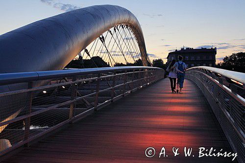 Father Bernatek’s love bridge in Cracow. Crosses Vistula river from Kazimierz to Podgórze. This foot and bicycle bridge is only 3 years old but quickly became an important tourist destination in this historical city.