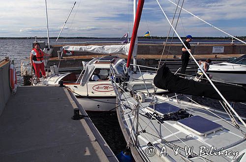 Wyspa to może lekka przesada. Wysepka Gåsören byłoby bardziej na miejscu. Wszystko tu jest małe – domki, latarnie morskie i porcik, którego wejście ma zaledwie 6 metrów szerokości, a długość głównego nabrzeża wynosi jakieś 20 metrów. W silniejszym, bocznym wietrze precyzyjne wpłynięcie bez „obcierki” o zabezpieczone deskami główki może być dla większych jachtów trudne. Nam się udało, ale wyhamowaliśmy zaledwie 15 cm za rufą cumującego w głębi mariny jachtu. Zmianę miejsca postoju na bezpieczniejsze, wykonaliśmy na cumach przerzuconych bez trudu przez wąskie gardło wejścia. Przystań zarządzana jest przez szwedzki związek żeglarski, a jego członkowie zgotowali gościom z dalekich stron wspaniałe powitanie. Oprowadzili po wszystkich atrakcjach, opowiadając historię Gåsören i chwaląc się, że są ostatnimi latarnikami w Szwecji. Okazuje się, że na wyspie są dwie latarnie morskie. Większa, automatyczna, spełnia oficjalną rolę, natomiast stara, mieszcząca się w drewnianym domku, została przez tutejszych zapaleńców wyremontowana i za pozwoleniem władz zapalana jest o zmroku, przy czym sektory jej świecenia zwrócone są ku lądowi, by nie wprowadzać w błąd nawigatorów. Znajdziecie tu też dawną stację pilotów, saunę nad brzegiem morza i piękne, kamieniste wybrzeże. Z wyspy dobrze widać nowoczesny zakład utylizujący elektroniczne „śmiecie” z całego świata. Ponoć świetny biznes. Dla żeglarzy spędzających noc w porcie ciekawostka ze względu na widoczne w mroku czerwone jęzory roztopionego metalu wylewające się z hutniczych pieców. A wszystko to znajduje się na szwedzkim wybrzeżu Zatoki Botnickiej, w pobliżu miasta Skellefteå.