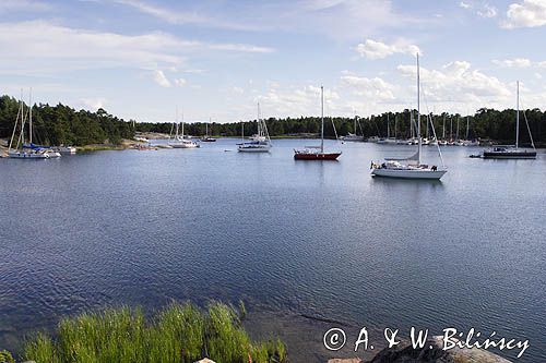 Harstena island in Sweden has a very safe anchorage in a long and narrow bay. Pleasant flat rocks make a great place for sunbathing and as a picnic area. Popular destination among Swedish sailors.